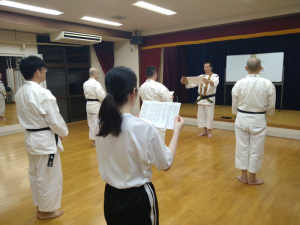 今日はまず礼法、諸作法、そして基本の突きと蹴りを確認しました。