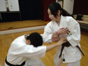 女子護身術では、広島城北高校兼籍のD口拳士が暴漢役でボコボコに。