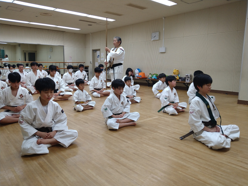 ストレッチと軽い基本で体を温めた後、鎮魂行。